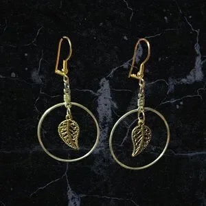 Gold Leaf Hoop Drop Earrings - Handmade Women Jewelry
