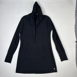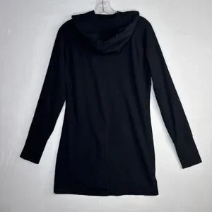 Stay cozy and stylish with this Yogalicious long hoodie in women's size Large, crafted in a super soft, comfortable fabric perfect for everyday wear. This black hoodie features a longline silhouette and thumbhole sleeves, making it ideal for layering, lounging, or active lifestyles.