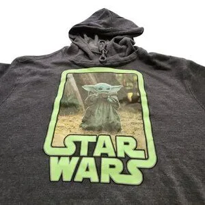 Star Wars The Mandalorian Grogu Baby Yoda Hoodie Men’s XL Gray Color Spring Hood