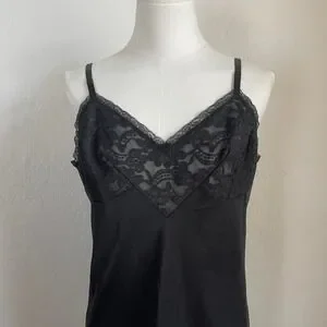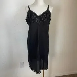 Vintage Vanity Fair Black Lace Slip Dress