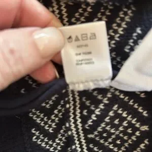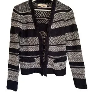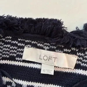 Loft 100% Cotton Knit Open Cardigan Navy/Cream Size XS Lady Jacket
