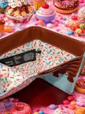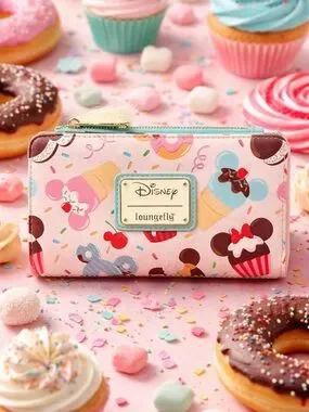 Add a sprinkle of sweetness to your everyday style with this adorable Disney x Loungefly wallet! Featuring a playful pastel design with Minnie-inspired cupcakes, donuts, sprinkles, and treats, this bi-fold snap wallet is both fun and functional.