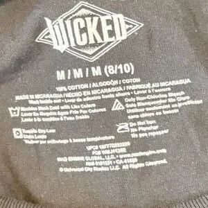 Black short sleeve T-shirt with the “Wicked” vibrant pink and green. NWOT.