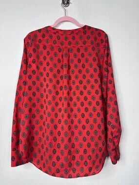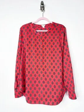 2/$30 J. Crew Medallion Print Drapey Crepe Henley Tunic Top Orange XL #A1794