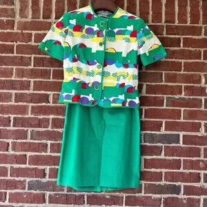 Anne Crimmins Umi Collections Skirt Suit Vintage Multi Color Geometric 4 Spring