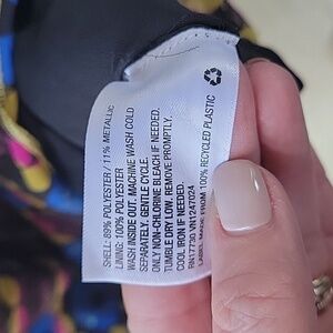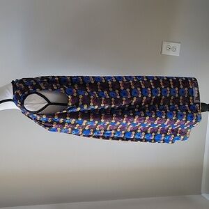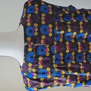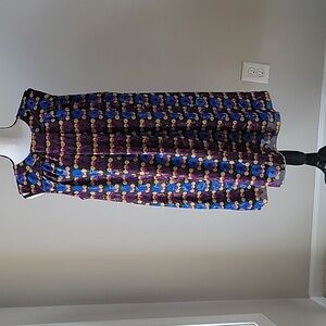 Elevate your wardrobe with this chic sleeveless dress. Featuring a vibrant metallic multicolor pattern, it's perfect for any occasion. Stand out with its unique design and comfortable fit. Pre-owned, no holes, no stains, and snags. Fully lined.