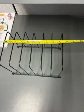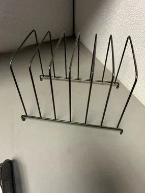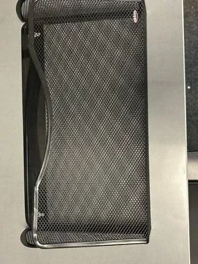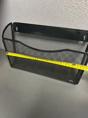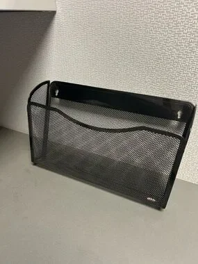 edison black mesh desk tray organizer. Keeps papers and supplies tidy on your desk. Durable metal construction with a breathable mesh design. Simple, low-profile style for home office use.