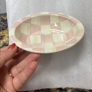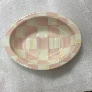 Elegant oval soap dish by MacKenzie-Childs. Smooth glossy cream finish. Simple and versatile for use or display.