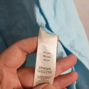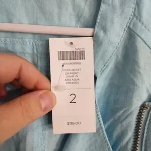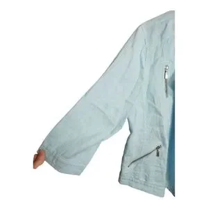 Light blue 100% linen zip front jacket.