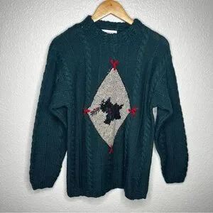 Vintage Scottie Dog Sweater Cable Knit Holiday Pullover Size Small 100% Wool S