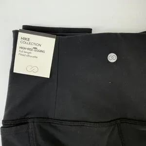 Calla Collection high-rise leggings in black. Full length design with a fitted silhouette and convenient zippered pocket. Perfect for hiking, workouts, or casual wear.