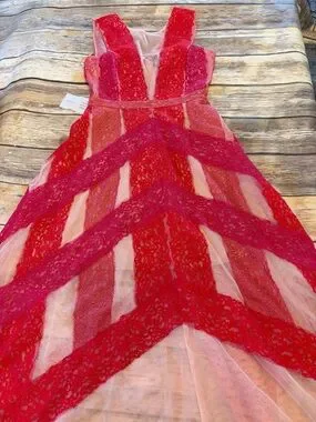 NEW BCBGMaxAzria Red Lace High-Low Tulle Skirt