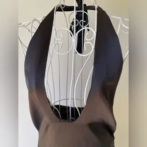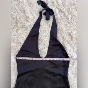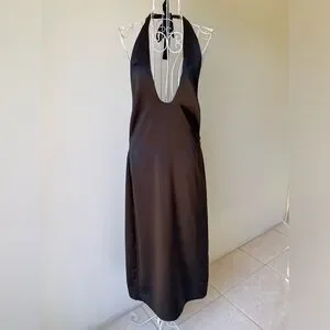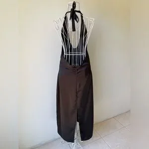Jason Wu Satin Deep U Neck Halter Midi Dress back slit zip black size M