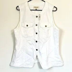 NWT Madewell White Denim High Crewneck Vest - Size: 16 (XL)