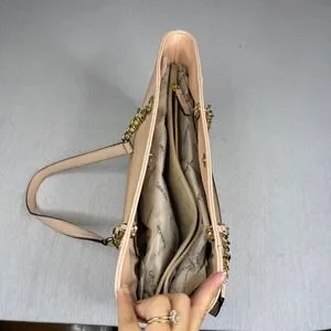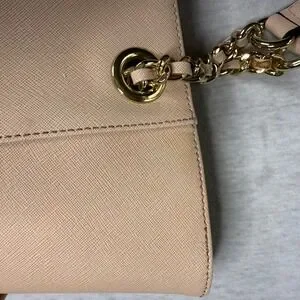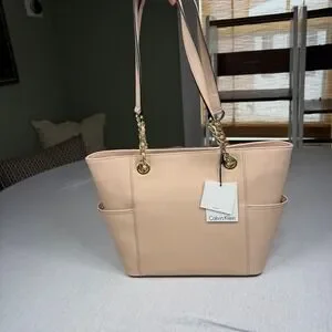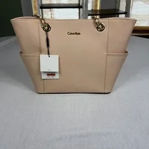 Calvin Klein Tote Bag Blush Pink Saffiano Leather Gold Chain Accents NWT