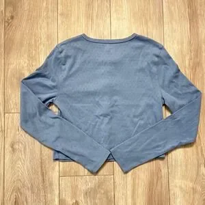 No Boundaries Blue Textured Button Up Long Sleeve Cropped Cardigan Top Size L