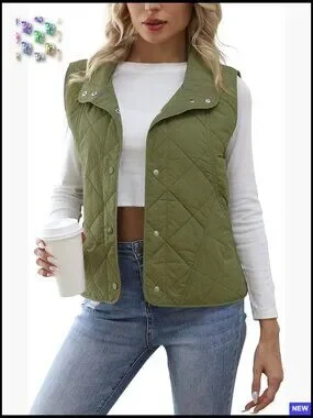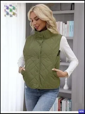 Quilted Vest Lightweight Sleeveless Button Down Preppy Chic Fall Outerwear