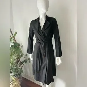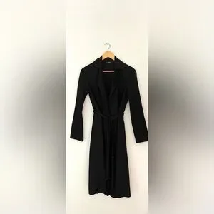 Elegant black long sleeve coat with a belt. Perfect for a stylish look.