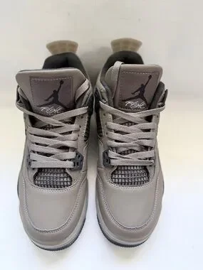 Classic Jordan silhouette. Smooth grey upper with black accents. Padded collar and cushioned midsole. Durable rubber outsole for traction. Breathable mesh panels for airflow. No box