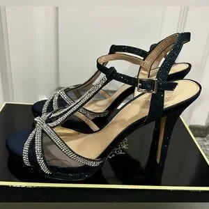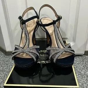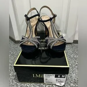 I. Miller Navy Rhinestone Heels Size 6 Wedding Party Ankle Strap