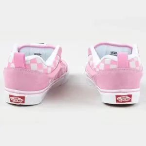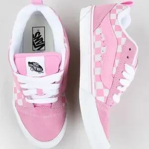 Vans, Vans Knu Skool, NWT Vans Knu Skool, pink Knu Skool, Brand new Knu Skool pink checkerboard Van's women's size 6.5, NWT women's Vans, checkerboard sneakers, prism pink, pink shoes, chunky sneakers, platform, skater style, skate shoes, streetwear sneakers, Y2K fashion, 90s inspired, retro style, casual sneakers, everyday wear, school shoes, cushioned, padded collar, comfort insole, festivals, walking, women’s sneakers size 6.5, NWT, BNIB, brand new in box, pastel pink, lace-up sneakers, low-top sneakers, colorful, suede, grunge, color block, two-toned, travel, commuting