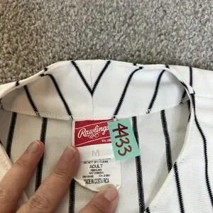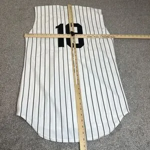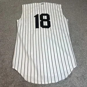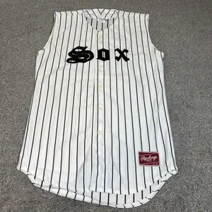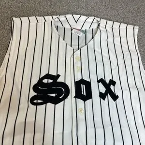 Sox Jersey Mens Medium White Black Baseball Pinstripe Button Front 18 Sleeveless