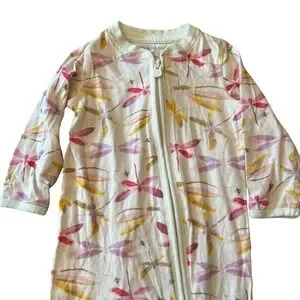 Burt's Bees Baby Girls 3-6M Pajamas Full Zip Pink Dragonfly One Piece Organic