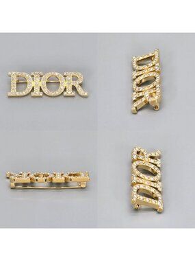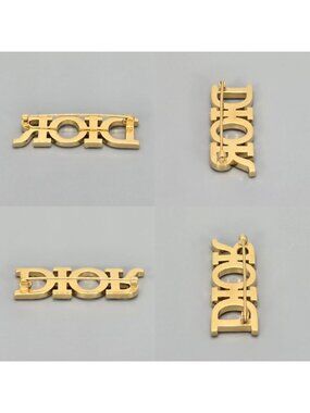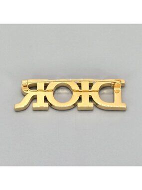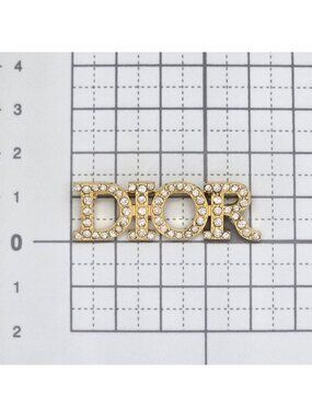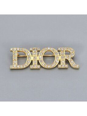 This is an authentic Dior Dioevolution Logo Brooch Crystal Gold. The brooch features the iconic Dior logo embellished with sparkling crystal stones set in a polished gold-tone metal.