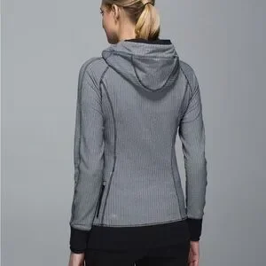 Lululemon Think Fast Hoodie Women Size 10 Black Herringbone Sweatshirt