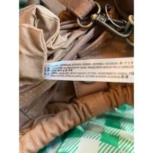 Interior: Fabric lined, one zip pocket, one slip pocket