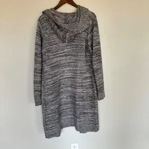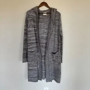 Sienna Sky Womens Grey Space Dye Hooded Open Front Longline Cardigan Sweater L