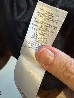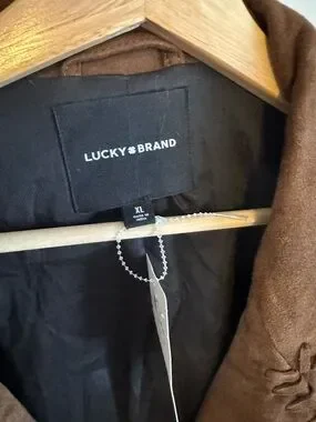 This is new with tags but it does have one button cap missing. Easy to replaced. This is a $500 jacket at a great price.