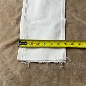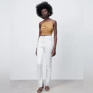 Item keywords: zara; pants; bottoms; jeans; denim; fitted; flare; high rise; buttoned; white; distressed; casual; daywear; workwear; business casual; capsule wardrobe; streetwear; summer; fall; transition pieces