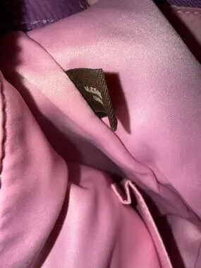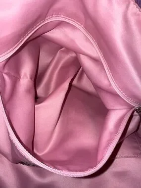 Stylish purple tote with dual straps and exterior zip pockets. Lightweight and practical for everyday use. Features decorative charm and logo patch for a polished look. Versatile purple color pairs well with many outfits.