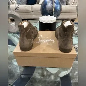 Stylish brown high-top sneakers with signature spikes. Perfect for a bold look.