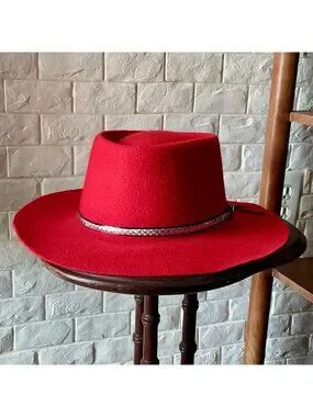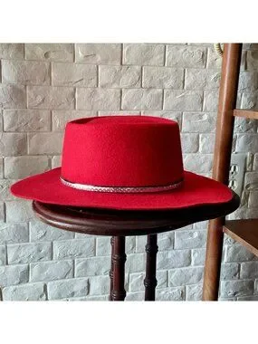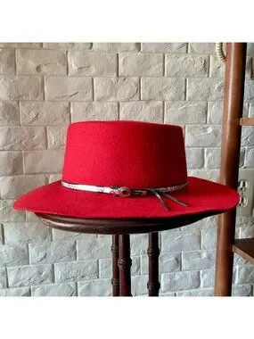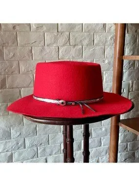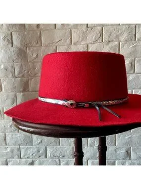 VIntage Red 100% Wool Felt Western Hat Silver Concho Hatband