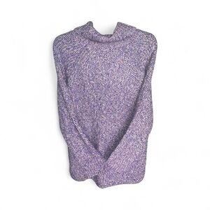 Cozy and colorful marled knit sweater by JohnPaulRichard. Features a soft cowl neckline, relaxed silhouette, and a beautiful mix of purple, lavender, blue, and green tones. Perfect for layering on chilly days or pairing with denim for a casual chic look.