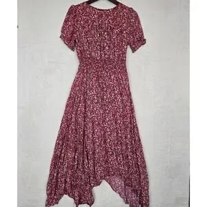 Hayden Los Angeles Floral Ruched Waist Maxi Dress Asymmetrical Hem Size Medium