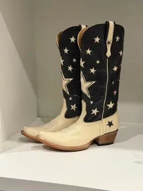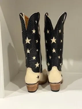 Never worn! Freebird STARZZ Stylish women's cowboy boots with bold star embroidery. Black upper with textured detail and cream foot for a striking two-tone look. Classic western silhouette for everyday wear and special occasions. Comfortable fit with a durable sole for long-lasting wear.