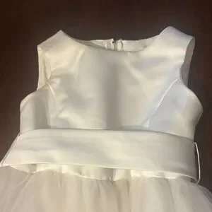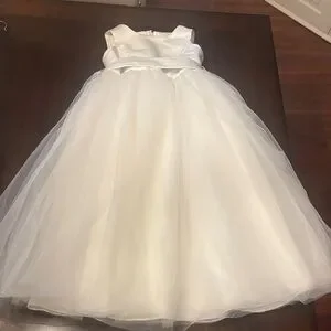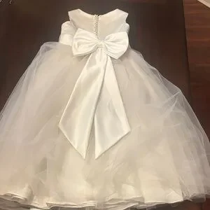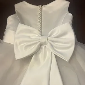 David’s bridal size 4 flower girl dress with button detail and bow.