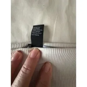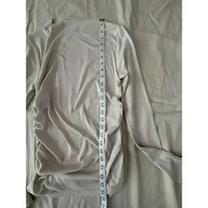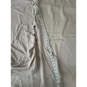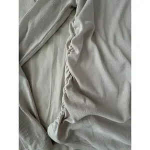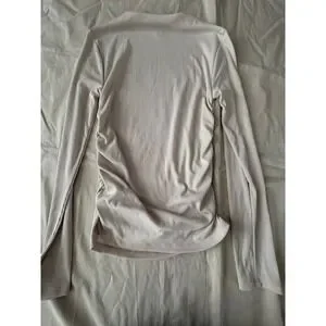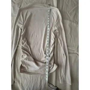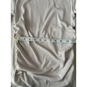 Forever 21 Women Size Small Ribbed Long Sleeve Top Beige Ruched Side Mock Neck