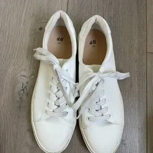 H&M white faux leather fashion sneakers