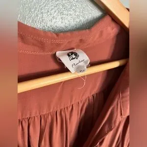 Chic terracotta dress with button-up front. Ideal for everyday wear, pair with boots for a cute fall look!