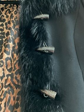 Beautiful Dolce & Gabbana Black wool jacket featuring luxurious fur trim and the brand’s iconic leopard lining.