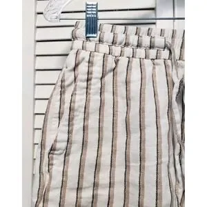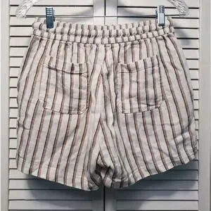 Old Navy Casual Shorts Women's Size XS White Tan Striped Linen Blend Pockets