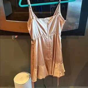 Boohoo Champagne Satin Frill Skirt Wrap Skater Dress Size 6