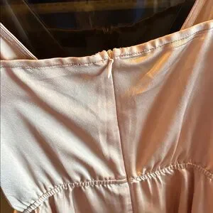 Flirty satin mini dress in a gorgeous blush champagne pink. Adjustable straps, wrap-style bodice, and a ruffle hem for the cutest twirl moment! Includes matching waist tie for a cinched silhouette.