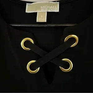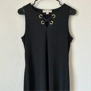 Michael Kors Small Black Bodycon Mini Sleeveless Dress with Gold Eyelets