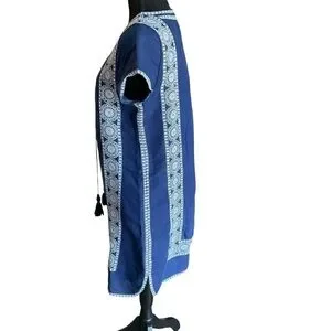 Vineyard Vines dress, lace-up tunic, embroidered dress, boho style, navy summer dress, linen cotton blend, tassel tie dress, beach cover up, size 8