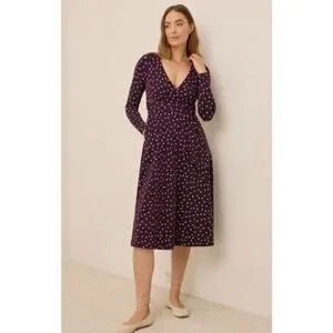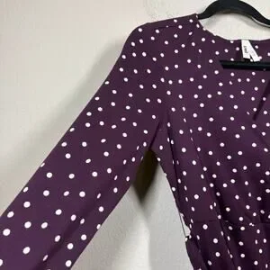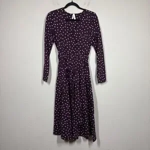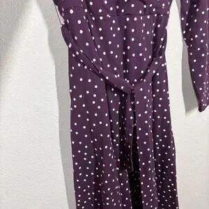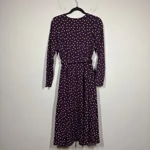 Pact Medium Fit & Flare Faux Wrap Dress Purple Polka Dot Belted Long Sleeves